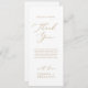 Este delicado obrigado de chá de ouro que você recebe é perfeito para um casamento moderno. A design romântica minimalista apresenta uma magnífica e elegante tipografia dourada num fundo branco com um aspecto simples e limpo. Coloque essas placas na configuração de mesa para cada um dos seus convidados na sua recepção de casamento. Personalize o cartão com os seus nomes e uma mensagem de obrigado especial.