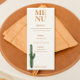 Coloque a palco para a sua recepção de casamento com o tema do deserto com o nosso Cardápio de Casamento Rusty Laranja e do Deserto de Cactus! Este maravilhoso menu de casamento mostra uma paleta de cor laranja rústica e ilustrações charmosas de cacto, capturando a essência da paisagem do deserto. O design exude calor e charme do Sudoeste, fazer-o como um complemento perfeito para a sua decoração de casamento inspirada no deserto. Cada cardápio é impresso profissionalmente em cartolina de alta qualidade, garantindo uma apresentação elegante e elegante. Personalize o menu com suas fontes, cores e texto desejados para criar uma aparência exclusiva e coesa para sua recepção de casamento. Nosso Cardápio de Casamento Previsto para o Deserto de Rusty Orange e Cactus não só guiará seus convidados através das delícias culinárias da noite, como também servirá como uma lembrança memorável do seu dia especial. Compre agora e melhore sua celebração de casamento com o tema do deserto com nosso Cardápio de Casamento com o Rusty Orange e o Deserto de Cactus