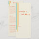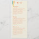 Imprima seus convidados com nosso menu retro chic de casamento. Projetado para coordenar com o tema do seu casamento, este menu apresenta um fundo amarelo claro com três faixas vibrantes em cor, amarelo e laranja à esquerda. Seus nomes em texto laranja em negrito, complementados por um símbolo "+" amarelo exclusivo para "e". Os deliciosos detalhes de sua refeição estão elegantemente listados na parte de trás do menu com a adição das 3 listras, acrescentando um toque moderno, mas nostálgico. Perfeito para os casais que querem a sua papelaria de casamento para refletir a sua celebração única e colorida.