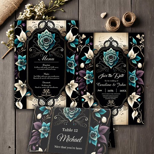 Design floral elegante que exalta luxo e sofisticação. Um delicado padrão de flores e deixa quadros na borda do convite, acrescentando um toque de elegância.
