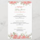 Celebre a chegada da sua menina com o nosso cardápio de Chá de fraldas rosa. Perfeitamente capturando a alegria e antecipação desta ocasião especial, este menu apresenta uma bela mistura de arcos cor-de-água rosa e ouro, flores, e detalhes charmosos de iniciação, curso principal e sobremesas para deleitar seus convidados. A cor rosa pastel suave, enfeitiçada com um delicado padrão floral, define o tom para uma celebração doce e sofisticada, enquanto um arco rosa espantoso agarra a parte de trás do cartão de menu criando um quadro exuberante e convidativo.