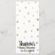 Menu de Comida do chá de fraldas "Pinguim bebê Dourado" Personalize este menu de comida de chá de fraldas de dois lados. Simplesmente exclua o texto em ambos os lados do cartão de menu e substitua por suas próprias palavras. Escolha seu estilo, cor e tamanho de fonte favoritos. Obrigados para parar e comprar! Muito apreciado! Feliz Dia do Bebê! Estilo: 4" x 9" Perfeito para estágios, menus e programas de casamento, nossos cartões de rack personalizados são excelentes para suas necessidades publicitárias. Carregue seus próprios gráficos e logotipos ou personalize sua escolha de milhares de modelos exclusivos. Promova seu empreendimento mais novo com um cartão de rack personalizado! Dimensões: 4"l x 9"w (retrato) ou 9"l x 4"w (paisagem) Impresso em estoque de cartão branco de 100 lb com acabamento de brilho Alta qualidade, cor de cheio, cheio de impressão Designer Dica: para garantir o impressão de alta qualidade, observe que a área de design personalizável deste produto mede 4" x 9". Para obter melhores resultados, adicione o tipo de papel sangrado de 1/16": Basic