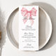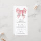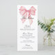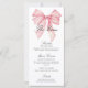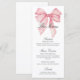 Menu Elegante de Chá Rosa 4x9" Este menu de evento apresenta um arco de fita rosa elegante com uma fonte elegante. Perfeito para qualquer chá de panela, casamento, festa de aniversário ou janto de ensaio! A cor do texto e dos gráficos é editável.
