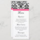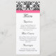 Cartão de creme para cardápios elegante Magenta Fuchsia, cor-de-rosa, preto e branco, com sotaque floral delgado e faixa horizontal colorida de sotaque. Personalize online com seus detalhes de casamento. Elegante sotaque de fúcsia magenta rosa-quente e cor damasco preta e branca. Sotaque úmido fresco, limpo e elegante, e faixa horizontal colorida de sotaque. Este item está disponível como uma coleção completa de casamento, incluindo convites, cartões RSVP, Salvar Datas, Magnets, Stickers, Cartões de Local de Mesa, Planejamento de Casamento e Binders de Álbum de Fotografias e Muito Mais!