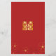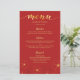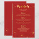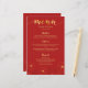 Cartão de menu de jantar de casamento com design de flores de cerejeira vermelhas e douradas.