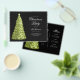 Convite para Festa de Natal Elegante com Programa e Menu que apresentam Árvore de Natal em Verde.