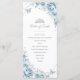 Bebê azul, prata e branca CQuinceanera celebra programas duplos finos e cartões de menu. Recursos, fontes de script, borboletas prateadas, rosas de aquarela e tiara. Perfeito para uma elegante celebração de glam estilo princesa. Personalize com seus próprios detalhes.