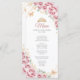 Celebração cor-de-rosa, dourada e branca da Quinceanera, programa fino de dupla face e cartão de menu. Recursos, fontes de script, borboletas douradas, rosas de aquarela e tiara. Perfeito para uma elegante celebração de glam estilo princesa. Personalize com seus próprios detalhes.