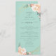 Se você está apaixonado pelo tema elegante do casamento verde da menta e você também ama ouro e florais, aqui está seu jogo perfeito. Este design apresenta peonias elegantes e rosa-buds em tons de pêssego e creme embebidos em folha de ouro, juntamente com uma forma geométrica falsa de folha de ouro rodeando os detalhes do menu de janto de recepção de casamento. Tudo num fundo verde de menta. Todo texto é facilmente personalizado usando os campos modelo fornecidos. Veja a coleção que acompanha os produtos complementares do pacote de casamento. Se você tiver uma pergunta sobre design ou quiser ver este design em outro produto, por favor, sinta-se à vontade para entrar em contato comigo em jschmidtdesignworks@gmail.com. Design © Judith Schmidt.