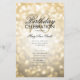 Design de "Programa de Festa de aniversário" elegante com faíscas e luzes Douradas com texto personalizado.