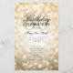 Design de "Programa de Festa de aniversário" elegante com faíscas e luzes Douradas com texto personalizado.