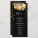 Avise aos seus hóspedes o que está no menu da sua recepção de casamento usando este Dourado menu do casamento de Natal Negro.