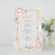 Crie o menu de casamento perfeito com esta moda, elegante design com cor d'água floral cor rosa de pedras, é um roteiro e quadro dourados. Para produtos correspondentes, entre em contato com o designer via Chat do Zazzle Designer. Copyright Elegant Invites, todos os direitos reservados.