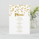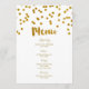 Menu do comensal de casamento no teste padrão glamoroso dos confetes do brilho do ouro. (note por favor o brilho é impressão somente)