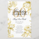 Design de "Programa de Festa de aniversário" elegante com Convênio Floral em Dourado com texto personalizado.