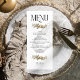 Menu de casamento de Natal com cursos de janto e itens de menu totalmente editáveis. A design apresenta uma tipografia elegante e glândulas festivas de ornamentos de férias de ouro e salgado. Para coordenar convites, artigos de papelaria e decoração do dia do evento, por favor, navegue na Coleção de Casamentos Holly Bells ou me mande mensagens para adicionar quaisquer itens adicionais de que você precise.