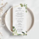Este cardápio de casamento geométrico de eucalipto verde-ouro é perfeito para uma celebração de casamento moderna. O design apresenta uma bela imagem geométrica dourada adorando elegantes folhas de eucalipto verde de aquarela elegante.