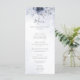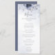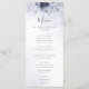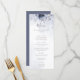 Cartões de cardápio florais modernos elegantes, com flores poeirentas de cor azul-d'água com caligrafia manuscrita.