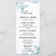 Este lindo cartão de cardápio de casamento apresenta cor d'água azul empoeirada, folhagem de eucalipto e um roteiro manuscrito de "Menu". Personalize com seus detalhes de casamento e encontre designs correspondentes na minha loja "DreamHut".