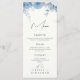 Elevem sua experiência de jantar de casamento com nosso Menu de Casamento Elegante Floral Azul Dusty. Este cartão de menu maravilhosamente desenhado apresenta um arranjo delicado de florais azuis empoeirados, acrescentando um toque romântico e refinado ao seu decoro de recepção. As matizes azuis e os sotaques florais complexos trazem um ar de elegância para cada mesa, complementando temas clássicos e modernos de casamento. O layout limpo garante que seus hóspedes possam ler facilmente através do menu cuidadosamente curado, de aperitivos a sobremesas. Personalize o cartão com suas seleções específicas de refeições para criar um acréscimo coeso e na moda no dia do seu casamento. Quer você esteja hospedando um janto sentenciado formal ou um buffet casual, nosso Menu Dusty Blue Floral Elegant Wedding adiciona sofisticação e charme, fazer sua refeição de casamento como visualmente agradável como é delicioso.