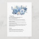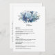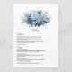 Menu de casamento floral azul com tipografia elegante personalizável para seus detalhes do evento.
