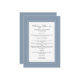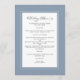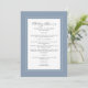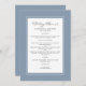 O design do cardápio Dusty Blue apresenta uma bela borda chic em azul que inclui uma elegante borda branca. A caligrafia e a escrita são cinzas de carvão sobre fundo branco. Um modelo moderno inclui nomes de casal, data de casamento e menu editável tudo em uma caligrafia única com design de roteiro. NOTA: a exibição da data de casamento, conforme mostrado, usa o bar vertical ou a linha que pode ser encontrada acima do \ em um teclado ou no seu dispositivo inteligente com os caracteres especiais. Você também pode personalizar com qualquer outro personagem de sua escolha.] A parte traseira do cartão é um Dusty Blue sólido. Entre em contato conosco em InvitationSuites@gmail.com com perguntas ou solicitações especiais!