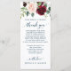 Menu duplo e cartas de agradecimento! Use apenas como um menu, excluindo itens do verso. Ou edite facilmente o menu e o obrigado que você coloca o cartão! Este design apresenta uma bela fonte de escrita e um belo buquê de florais burgundy. Veja a coleção inteira para mais itens correspondentes!