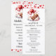 Menu e programa do chá de bebê do Dia dos Namorados com urso bebê doce em nuvens com balões em forma de coração e fundo de coração. Basta adicionar os detalhes do seu evento na frente e no verso deste adorável menu e programa do chá de bebê do doce coração.