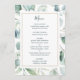 Este menu de casamento apresenta cor d'água eucalipto e folhas verdes botânicas pintadas com uma estrutura retangular de ouro. Para personalização mais avançada deste design, clique no link Personalizar mais para alterar a fonte, o tamanho e a cor.