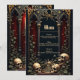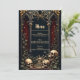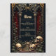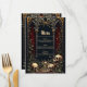 Elegância Gótica Escura. Arco espantoso apoiado por dois pilares majestosos terminaram num final escuro. Esses pilares estão luxuosamente cobertos de maria, cujas folhas verdes dão um contraste vibrante com os materiais escuros. Na base do arco estão três crânios humanos realisticamente representados cercados por mais mariposa. Estes elementos acrescentam um significado mais profundo à design e lembram a transição da vida e a força do amor que persiste mesmo além da morte.
