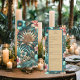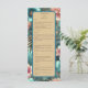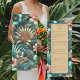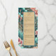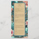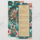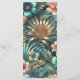 Menu Elegância Tropical, um menu sofisticado e belamente desenhado com um elegante padrão inspirado em tropicais. Ideal para praia, jardim e casamentos de destino, este menu mostra seus pratos com um toque refinado que complementa a elegância tropical geral do seu evento. Ele adiciona um olhar polido e coeso, melhorando a experiência de jantar dos seus convidados. Este design é criado usando uma imagem AI editada digitalmente.