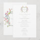Step into a world of timeless elegance with our exquisite Baroque wildflower wedding menu. An elegant crest adorned with a wreath of soft pastel watercolor blooms sits at the pinnacle of the menu, while menu details appear in dusty sage green, in sophisticated harmony. Perfect for couples who seek an invitation that whispers luxury, romance, and the charm of old-world grandeur. Let your wedding begin with a design as breathtaking as the day itself. Created by Simply Farmhouse Press.