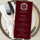 Menu Elegant Formal Monogram Crest Burgundy Wedding
