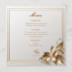 Present your reception meal in style with this elegant wedding menu card featuring refined gold botanical accents and a timeless ivory background. The graceful layout and delicate decorative framing create a sophisticated presentation that complements formal, classic, and luxury wedding themes. Designed to coordinate beautifully with matching wedding stationery, this menu card adds a polished finishing touch to each place setting. The subtle metallic-inspired leaf detail brings warmth and romance to the table while keeping the focus on your carefully planned menu selections.