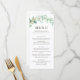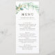This elegant wedding dinner menu features soft greenery foliage and clean typography on a white background. The simple, nature-inspired design adds a refined touch to your wedding table setting. Perfect for garden, outdoor, or botanical-themed weddings.