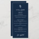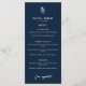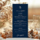 Add a refined and cohesive touch to your reception tables with this navy blue botanical wedding menu, designed to complement elegant and modern wedding themes. Featuring a deep navy background accented by a delicate white botanical sprig, this vertical menu card offers a clean and structured layout for listing your wedding meal courses in style. With distinct sections for starters, main courses, and desserts, this customizable menu is perfect for showcasing your personalized wedding dinner or buffet selections. The classic navy and white color palette coordinates beautifully with formal table settings, floral centerpieces, and matching wedding stationery from the same collection. Whether used at a seated dinner or plated reception, this botanical wedding menu enhances your guests' dining experience while adding a polished, design-forward element to your tablescape. Ideal for upscale weddings, city venues, or romantic garden receptions, it brings elegance and personalization to every place setting.