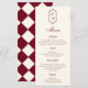 Menu Elegant Retro Checkered Burgundy Wedding
