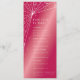 Uma elegante teia de aranha de diamante e estrelas contra um fundo rosa quente. Espaço para quatro pratos mais detalhes extras na parte inferior. Todo o texto é totalmente editável, para que você possa adicionar ou excluir texto e alterar o estilo/tamanho/cor/layout da fonte de acordo com as suas necessidades. A parte traseira é principalmente em branco, então mais texto pode ser adicionado lá, se desejar. Este design está disponível em outras cores, em papel-cartão de tamanhos diferentes e também em convites e acessórios coordenados.
