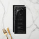 Uma elegante teia de aranha de diamante e estrelas sobre fundo negro. Sala para quatro cursos e detalhes extras na parte inferior. Todo o texto é totalmente editável, para que você possa facilmente adicionar ou excluir texto e alterar o estilo/tamanho/cor/layout da fonte de acordo com as suas necessidades. A parte de trás é, na sua maioria, vazio, de modo que mais texto pode ser adicionado lá se você desejar. Este design está disponível em outras cores, em estoque de cartão de diferentes tamanhos e também na coordenação de convites e acessórios.