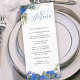Menu Elegante Calliografia Rosas Azuis e Eucalyptus