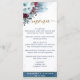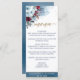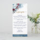 Atraia seus convidados com este cartão de menu elegante que pode ter seu(s) nome(s) e data na parte inferior ou deixar o menu servir como cartão de lugar e use esta seção para adicionar nome de convidado e sobrenome. Separe o design que apresenta no topo um design único com uma delicada mancha azul de aquarela em cascata atrás dos detalhes florais do canto, bem como os espetos de ouro, menu em ouro com caligrafia moderna escrita à mão e faixa azul de aquarela na parte inferior. Flores e folhagem em azul, marinho, burgundy, vermelho, magenta e roxo empoeirado. Cor da água azul atrás. Parte de nossa coleção "Celestial Blooms" com uma variedade de produtos de coordenação disponíveis.