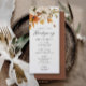 Um tema elegante de abóbora Menu de Ação de Graças. Projetado com uma ilustração de aquarela de queda é certamente um excelente adicional ao evento de Janto de Ação de Graças. Itens correspondentes na nossa loja, Design do Partido Cava.