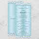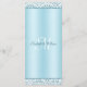 Este menu de monograma azul brilhante de tendências é perfeito para a sua elegante decoração de casamento. A base metálica falsa é enquadrada em cima e em baixo com damasco, e o título está na tipografia moderna da escrita. No topo e no verso está um monograma elegante.
