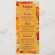 Defina o tom para sua casamento outono com este Menu de Casamento de outono, maravilhosamente projetado. Apresentando um pano de fundo de laranja e folhas amarelas quentes e delicados sotaques florais, este menu adiciona um toque de encanto sazonal à sua recepção. Completamente personalizável, ele permite que você mostre sua seleção única de iniciantes, manchas e sobremesas, incluindo seu bolo de casamento. Personalizado com os nomes do casal e a data do casamento, é a combinação perfeita de elegância e funcionalidade, assegurando que seus convidados se sintam bem-vindos e encantados. Ideal para comemorações rústicas, ao ar livre e de outono.