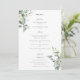 Este único design botânico apresenta um galho curvante de folhas elegantes de eucalipto com cor d'água com folhas artísticas de prata esboçadas e flores brancas silvestres.