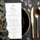 Perfeito para casamentos, eventos de aniversário e celebrações especiais, nosso Menu de Jantar de evento tradicional elegante apresenta um design clássico formal. Personalize todos os detalhes em fonte serifada preta sofisticada e caligrafia em um fundo branco crocante. A composição tradicional fresca é adornada com folhas botânicas monocromáticas decorativas. Para obter resultados ótimos, substitua os detalhes do modelo pelos seus próprios detalhes, deixando espaço entre os parágrafos como no exemplo e capitalize onde especificado ou se a palavra for um substantivo próprio e normalmente capitalizado. O verso do cartão é branco sólido. Se precisar de ajuda com o espaçamento para fazer seus detalhes caberem perfeitamente, por favor me envie uma mensagem no link fornecido na listagem ou e-mail para invitationsuites@gmail.com. Normalmente respondo em 24 horas ou menos. Solicitação de cor personalizada aceita.