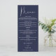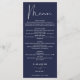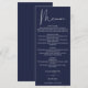 Este elegante cardápio de casamento azul marinho pode ser personalizado com suas informações em tipografia sofisticada com suas iniciais monogramas no verso. Projetado por Thisisnotme©