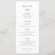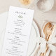 Menu de casamento personalizado com design moderno e limpo com caligrafia e folhagem delicadas.
