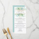 Aprecie seus convidados com este cartão de menu elegante. Separe o design que apresenta no topo um design único com fundo de aquarela e detalhes de verde numa mistura de turquesa, aqua, azul empoeirado e tons verdes. Detalhes da caligrafia manuscrita e elementos dourados. De volta num tom elegante de turquesa. Também disponível em verde claro. Parte da nossa coleção "Airy Blue and Green Watercolor" com uma variedade de produtos de coordenação disponíveis.