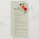 Elementos: flores a aquarelas, rosas, folhas, verde, folhagem, serifa viva. Cores: vermelho, cor-de-rosa, pincel, pêssego, laranja, verde, aqua, lacre, ouro, castanho e roxo. Temas: moderno, clássico, vintage inspirado, elegante, botânico, boho, boemia, folhagem, jardim, adega, casamento ao ar livre, primavera, verão, Edwardian, Victorian, antigo, capricho. Coleção: Coleção de Casamentos de Cinzas Vermelhas de Boho Vintage Boho. Tipo de produto: Menu